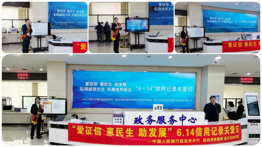 6月14日,延边州暨延吉市政务服务中心一楼大厅人头攒动,一场以“爱征信 惠民生 助发展”和“弘扬诚信文化,共建信用延边”为主题的信用记录关爱日宣传活动在此隆重举行。此次活动旨在进一步提升社会公众对信用体系建设重要性的认识,推动诚信文化建设,助力地方经济社会发展。